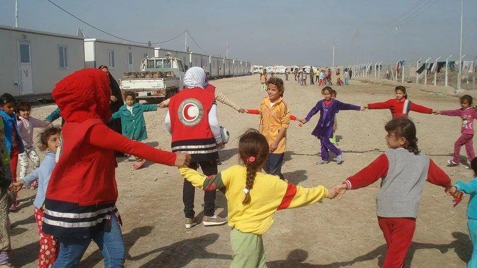 وقام كادر الجمعية بتشكيل فرق الدعم النفسي مدربين من قبل الصليب الاحمر الدنماركي واجراء مسح ميداني لاعداد النازحين ومواقعهم وتوزعت فرق الدعم النفسي في بغداد والمحافظات (اربيل ، الانبار، البصرة ، المثنى ،بابل، دهوك ، ديالى، الديوانية ، ذي قار ، السليمانية، كربلاء، كركوك، ميسان، واسط) للتواجد مع النازحين في وقت واحد بغية التخفيف من معاناة العوائل النازحة وتحقيق السعادة للاطفال وتمكينهم من الاستمتاع بفعاليات البرنامج المتنوعة الذي تضمن مهارات الرسم والالعاب الترفيهية واجراء جلسات التفريغ النفسي للراشدين والنساء وتعليم الامهات كيفية التعامل مع الاطفال لاخراجهم من اجواء العزلة وذكريات التهجير القسري وما غرسه من الم وخوف في نفوسهم وتشجيع الطلبة على الدراسة والمثابرة .