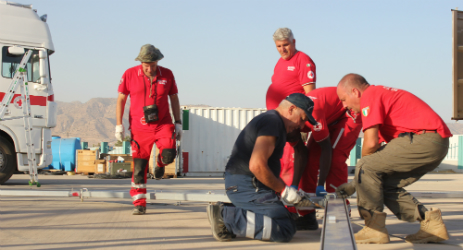 وكاستجابة لهذا الوضع، قام الصليب الأحمر الإيطالي بنصب مطابخ ميدانية في محافظة دهوك-إقليم كردستان العراق. وقد تم تهيئة المطابخ وجهوزيتها لطهي ما يقارب 10،000 وجبة يوميا، حيث يعتبر هذا النوع من المطابخ ضروري للأسر النازحة، سواء في الشوارع أو في المباني غير المكتملة.
