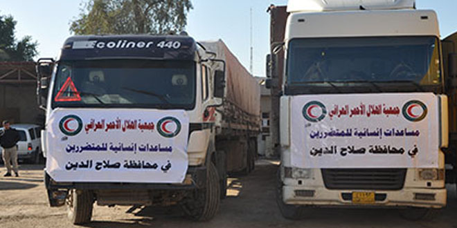أعلنت جمعية الهلال الاحمر العراقي عن استمرارها في تقديم المساعدات للمتضررين من الفيضانات في محافظة صلاح الدين ، وقال الامين العام المساعد في جمعية الهلال الاحمر العراقي محمد الخزاعي ” ان الجمعية قامت بإرسال مساعدات إنسانية عاجلة لإغاثة العوائل المتضررة من جراء الفيضانات التي حصلت مؤخرا في محافظة صلاح الدين” ، واضاف “ان المساعدات المرسلة تتضمن مواد غذائية واغاثية اضافة الى ما موجود في فرع صلاح الدين تكفي لإغاثة (2500) عائلة “، مبينا “ان هذه المساعدات جاءت بناءً على الاجتماع الذي عقدته خلية الازمة المشكلة من قبل الحكومة العراقية والتي زارت محافظة صلاح الدين واطلعت على حجم الأضرار التي خلفتها الفيضانات .