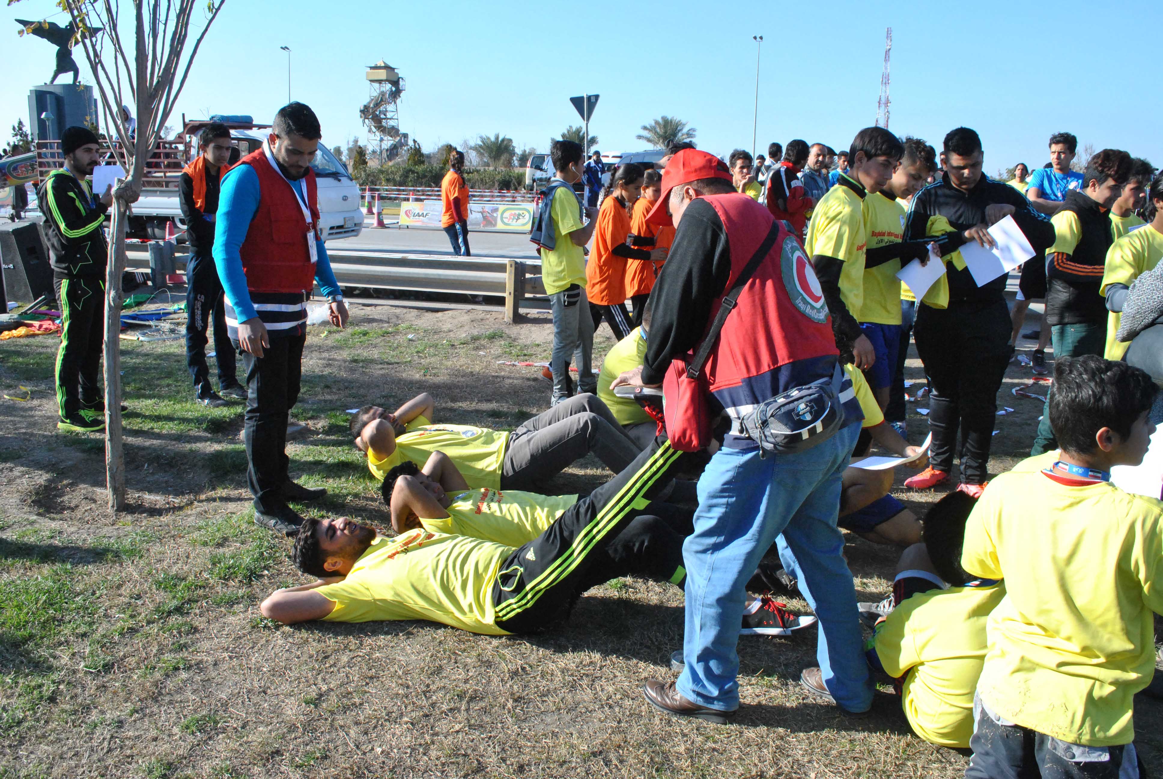الوسوماسعاف الاولي المارثون الرياضي فرق الهلال الأحمر العراقي مارثون مساعدات مساعدات انسانية وزارة الشباب والرياضة وزير الشباب والرياضة عبد الحسين عبطان