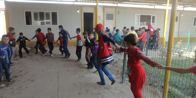 نفذت جمعية الهلال الاحمر العراقي ورشة دعم نفسي في محافظة دهوك بالتعاون مع السيدة دسبينا منسقة برنامج الدعم النفسي للصليب الاحمر الدنماركي شارك فيها عدد من مسؤولي وحدات الدعم النفسي للقسم الصحي من كافة فروع الجمعية وتاتي الورشة بغية اعداد كوار مدربة لتقديم الدعم النفسي للاطفال وتطوير القابليات وتعلم طرق جديدة للتعامل مع الاطفال نفسيا وتضمنت الورشة تطبيقات عملية في مجال الدعم النفسي والقاء محاضرات عن مواضيع (الاحماء وجلسات التفريغ النفسي والتركيز والاصغاء وادارة الجلسات وتبادل الاراء بين المتدربين والانهاء ) وتم تقسيم المتدربين الى مجاميع لتطبيق التدريبات على اطفال احد المدارس الابتدائية في دوميز وتم توزيع الهدايا للمشاركين . وتاتي الزيارة بغية توصيل الافكار والتفاعل الايجابي وتعزيز الثقة بين الاطفال . يذكر ان ورش الدعم النفسي تقع ضمن برامج القسم الصحي في الجمعية والتي تولي لها اهتماما كبيرا . لانشاء مجتمع واعي صحيا ونفسيا .