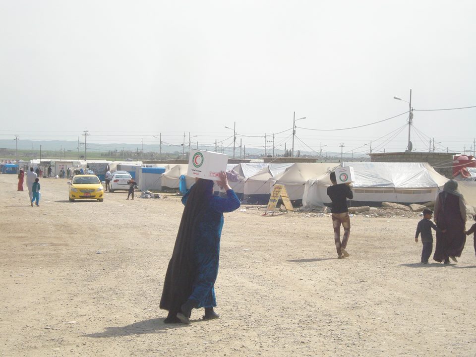 اعلنت جمعية الهلال الاحمر العراقي عن توزيعها اكثر من (1500) سلة غذائية واغاثية للعوائل النازحة في مخيم ليلان بمحافظة كركوك . حيث قامت كادر الفرع بتوزيع اكثر من 1500سلة غذائية واغاثية لأكثر من 1500 عائلة لاجئة بمخيم ليلان الذي يع جنوب محافظة كركوك. هذا ومازالت فرق الهلال الاحمر العراقي المتواجدة في المخيم المذكور مستمرة بيوزيع المواد الغذائية والاغاثية فضلا عن تنظيم دورات دعم نفسي للعوائل النازحة والرفع من حالتهم المعنوية في ضل الظروف الصعبة التي يعيشونها بسبب اضطرارهم الى ترك مناطقهم ومنازلهم والهروب الى المدن اخرى بحثا عن ملاذ امن.