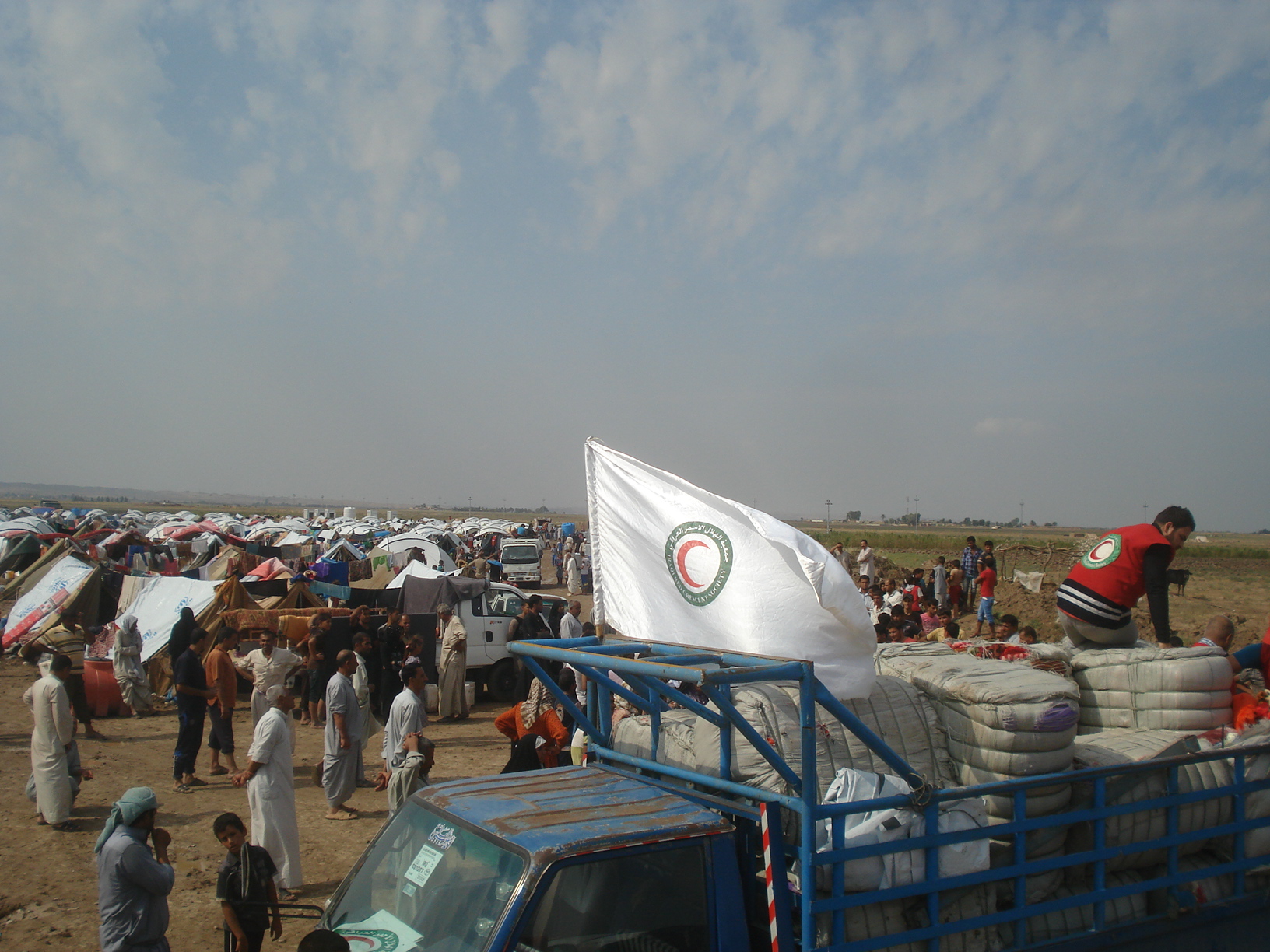 اعلنت جمعية الهلال الاحمر العراقي / فرع ديالى عن توزيع مساعدات غذائية واغاثية عاجلة للنازحين شمال شرق بعقوبة وذلك ضمن برنامج عمل لايصال المساعدات الانسانية بشكل متواصل الى عموم النازحين في محافظة ديالى ، حيث وزع كادر الفرع 30 خيمة و3 الاف بطانية على العوائل النازحة في (مخيم علياوه) احدى مخيمات النازحين في قضاء خانقين ، كما وزعت الجمعية 3 الاف حصة غذائية على العوائل النازحة في ناحية قرة تبة ، يذكر ان جمعية الهلال الاحمر العراقي وضعت خطة منظمة لخلق استمرارية في ايصال المساعدات الانسانية الى كافة العوائل النازحة داخل محافظة ديالى بغية تقليل حجم المعاناة وتلبية احتياجات تلك العوائل وفق الامكانيات المتوفرة كما ان اعداد العوائل النازحة في تزايد مستمر جراء احداث العنف التي ادت الى نزوح الاف الاسر الى قضاء خانقين واغلبها تسكن مخيمات.