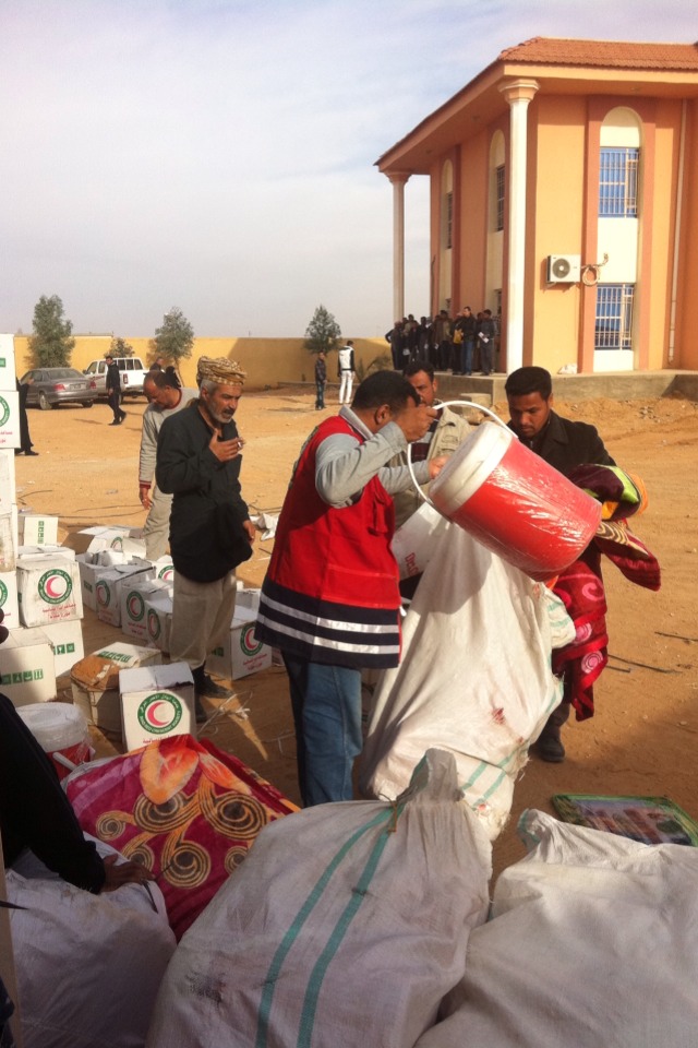 جانب من توزيع المساعدات