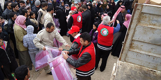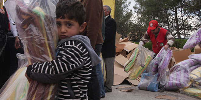 وزعت جمعية الهلال الاحمر العراقي مساعدات إنسانية لأكثر من (4) آلاف عائلة سورية لاجئة في الأردن على شكل دفعتين . وقال الأمين العام المساعد في الهلال الأحمر العراقي محمد الخزاعي” أن عملية توزيع المساعدات الانسانية مستمرة للوقوف الى جانب عدد من الاسر السورية التي لجأت للأردن من باب التكافل والتعاضد بين الأشقاء العرب للوقوف معهم في محنتهم. واضاف ” إن الجمعية قامت بتوزيع مساعدات انسانية لأكثر من 4000 عائلة سورية لاجئة في الاردن على شكل دفعتين بالتعاون مع الهلال الاحمر الاردني . وبين ان الدفعة الاولى من المساعدات الانسانية التي ارسلت الى الاردن للعوائل السورية اللاجئة بلغت بلغت (3000) سلة غذائية وزعت في منطقة عجلون شمال الاردن على العوائل السورية تقطن في محافظة عجلون استفاد منها اكثر من (1000) عائلة سورية لاجئة في الاردن ، اما الدفعة الثانية من المساعدات التي ارسلت الى العوائل السورية المتواجدة في الاردن تتضمن (1500) مدفئة نفطية و(13000) بطانية و(6000) دوشك تم نقلها عن طريق آليات وزارة التجارة حيث جهزت الجمعية بـ( 27) شاحنة لنقل المساعدات. واوضح الخزاعي ” ان المواد التي وزعت الى اللاجئين السوريين المتواجدين في الاردن كمساعدات انسانية جاءت عن طريق الحكومة العراقية بعد ان خصصت الدعم المادي لصندوق المساعدات لدول جوار العراق”.