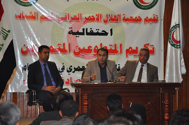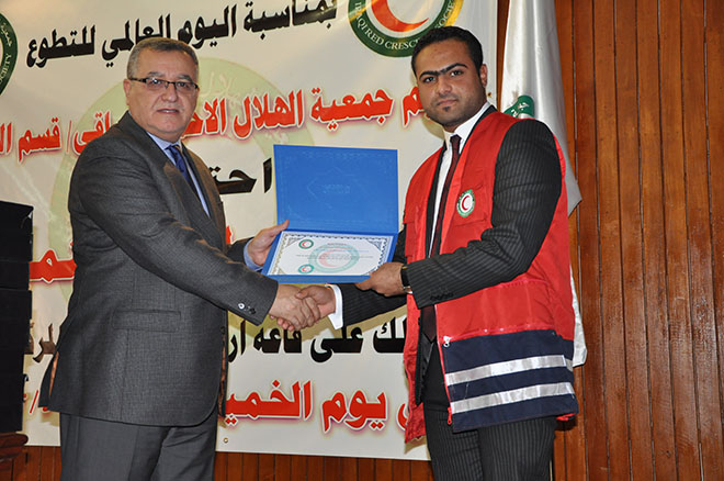 بمناسبة اليوم العالمي للتطوع أقامت جمعية الهلال الأحمر العراقي أحتفالية لتكريم المتطوعين المتميزين في النشاطات الإنسانية التي تنفذها الجمعية . وقال رئيس الجمعية الدكتور ياسين المعموري في كلمته ان “العمل التطوعي في الجمعية يزداد بشكل كبير ولا يقتصر على نشاط معين بل يشترك في جميع النشاطات الانسانية التي تقدمها الجمعية من خلال متطوعيها الذين ضحوا بأنفسهم وبذلوا الجهود ليلاً ونهاراً من أجل خدمة الفئات الأشد ضعفاً أوالعوائل النازحة التي اضطرتها الظروف الى ترك منازلهم والبحث عن ملاذات امنة .