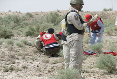 جمعية الهلال الأحمر العراقي فرع واسط تقوم بإزالة المخلفات الحربية لقرى غرب المحافظة