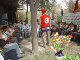 ألقى فرع المثنى للهلال الأحمر محاضرات للطلبة المشاركين في المخيم الكشفي لثانويات محافظة المثنى في منطقة ال بندر وشملت المحاضرات المدارس الابتدائية ودور الايتام الايوائية في قضاء السماوة وكان الهدف منها هو تعريف الطلبة بالحركة الدولية ومكوناتها والشارة والمبادئ الأساسية للحركة الدولية ودور الكشاف في الدعم النفسي ومبادئ الإسعاف الأولي والإسعاف الأولي النفسي ومحاضرات توعية عن النظافة العامة وطرق الوقاية من الانفلونزا الوبائية ومرض الكوليرا ومحاضرات للتوعية من مخاطر المخلفات الحربية ومحاضرات توعية من مخاطر التدخين واثاره السلبية في المجتمع وخاصة شريحة المراهقين وتم خلال المحاضرات توزيع مطبوعات وفولدرات توعية.