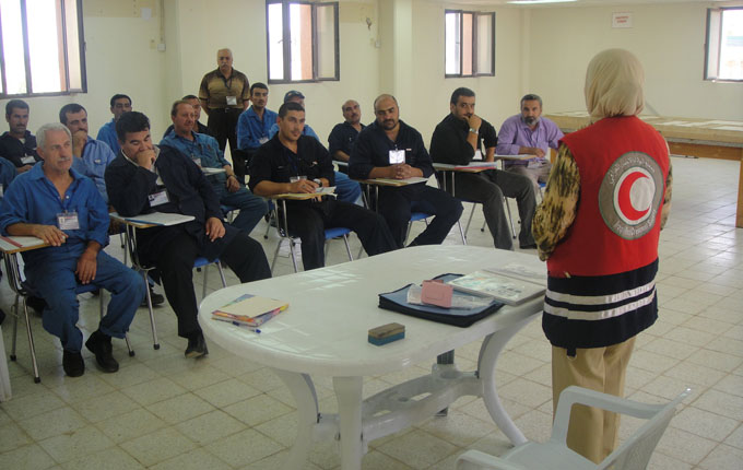 قامت جمعية الهلال الاحمر العراقي فرع كركوك عدة محاضرات للإسعافات الأولية لمنتسبي دوائر المحافظة منها (مركز حقوق الانسان ومديرية المرور العامة والدفاع المدني والمديرية العامة لشرطة كركوك ودائرة البيئة ومديرية الموارد البشرية ومديرية مجاري كركوك . وكان الهدف منها التوعية لتجنب الحوادث والكوارث التي تمر بها المحافظة فضلا عن القاء محاضرات حول الامراض الانتقالية وخطورتها حيث وضحت الجمعية طرق عديدة لتجنب الاصابة من الامراض. كما قام الفرع بعقد جلسة دائمة الصلة بينه وبين المتطوعين للأطلاع على المستجدات الطارئة على الفرع ومناقشة واقع عمل الفرع . من جانب اخر وزع الفرع بوسترات لتوعية المجتمع من المخلفات الحربية الى القرى التابعة لقضاء داقوق فضلا عن اجراء استبيان ميداني الخاصة بالشهداء والأرامل والأيتام والمتعففين .