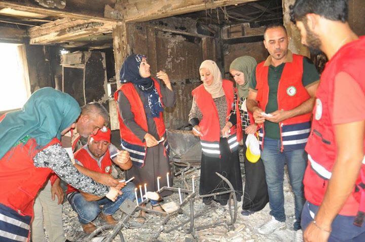 كما قامت فرق الهلال بزيارة عوائل الضحايا في منطقة الكرادة وتقديم الدعم النفسي لهم .